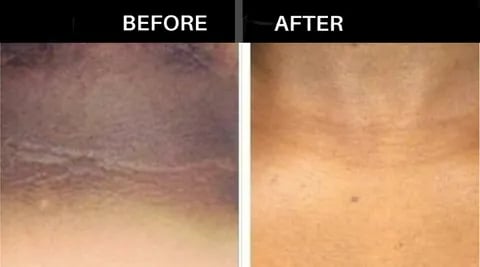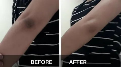 Wow. This stuff really worked! I noticed a huge difference in the skin tone in the affected parts. It softened the skin too. It used to be rough. now the area is smooth to the touch.