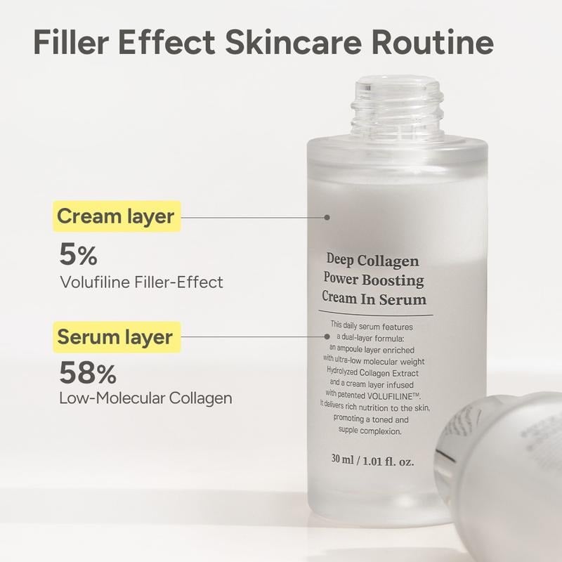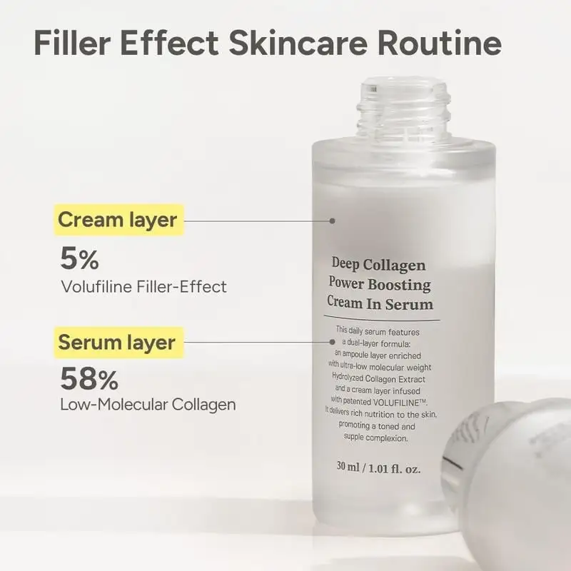 Cream in Serum is formulated with 92% absorbable collagen-boosting ingredients, including 58% low molecular collagen for deep hydration and 5% Volufiline to support a plumper, more supple look. This serum prioritizes active ingredients to help maintain skin’s moisture balance and elasticity.